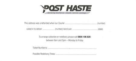 If you have missed a delivery, we will have left you a card.